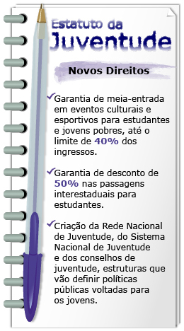 10/07/2013 15:14Projeto prevê benefícios como meia-passagem em ônibus interestaduais; e meia-entrada em cinema e eventos culturais para jovens de famílias de baixa renda.